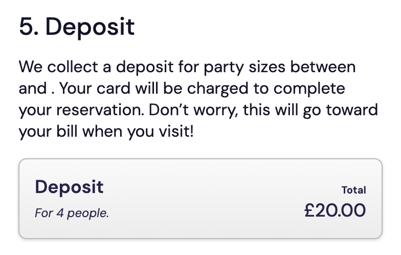 Payment handling was another critical point. If a reservation required a deposit or no-show fee, that step only appeared when it became relevant. I made sure the UI never referenced payments if they didn’t apply. When they did, the copy was as plainspoken, and specific as possible. Per-person cost, why we needed card details, and what would happen next.